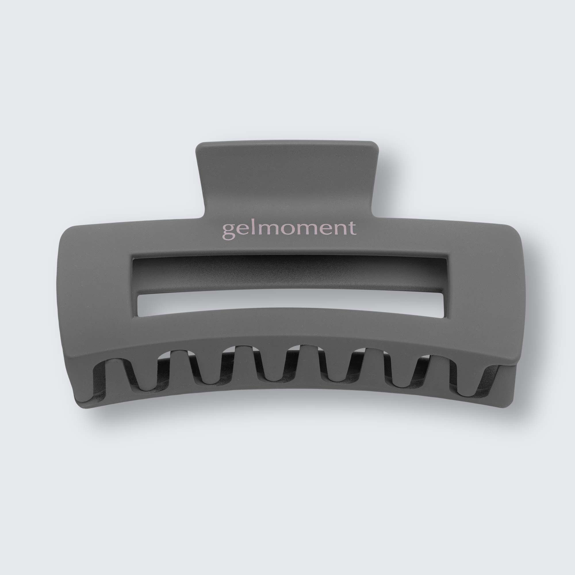 CHARCOAL with taupe gelmoment logo. A dark, versatile neutral that goes with everything.